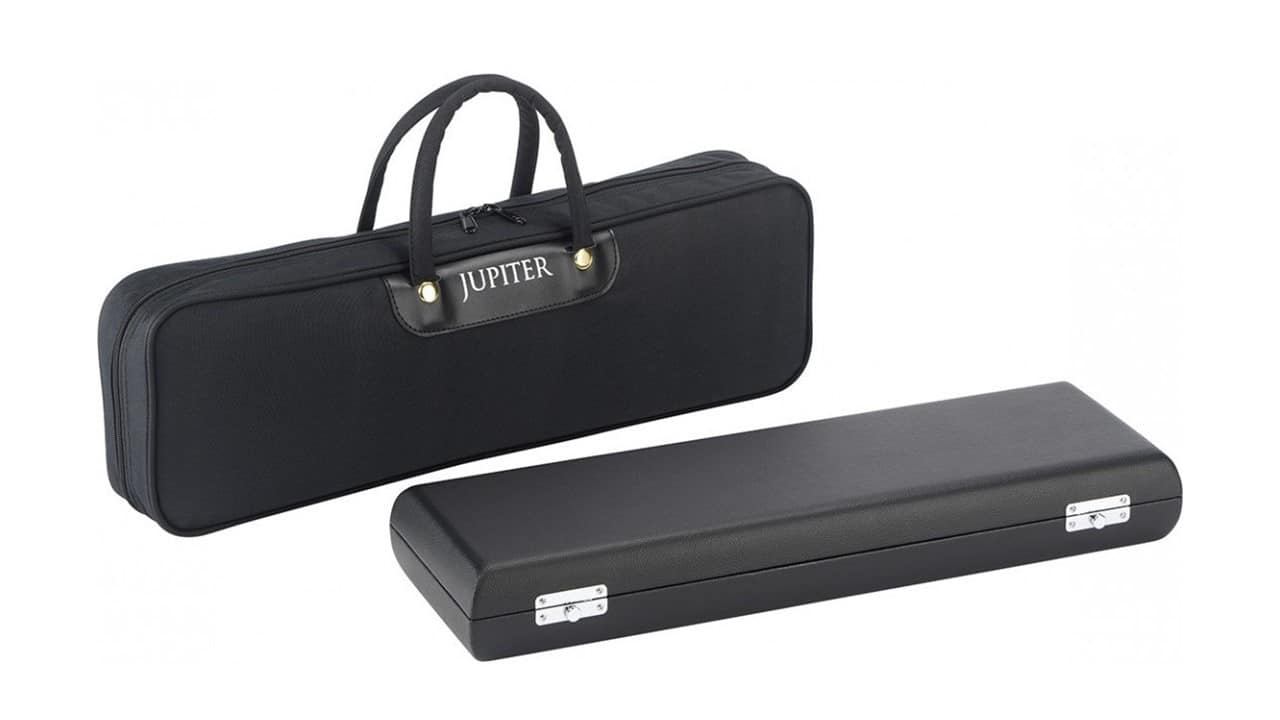 The Jupiter JAF1000E alto flute has a silver-plated head and body. Precision-cut head with hand-finished bevel. Stainless steel springs. Double-layer leather pads. Includes wooden and leather case with durable nylon cover.