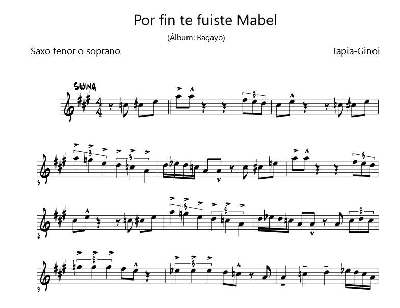 Transcription of wind arrangements and solos by Zeta Yeyati and Edu Introcaso, saxophonists with La Mississippi Blues Band.