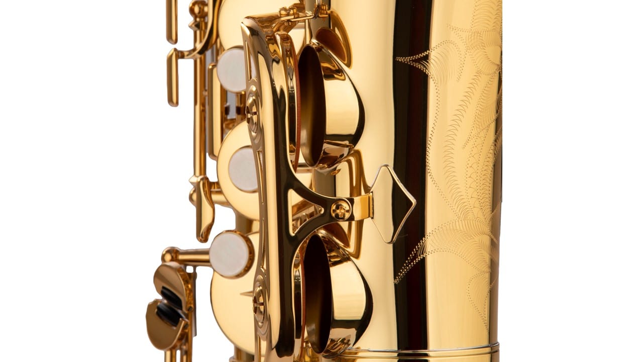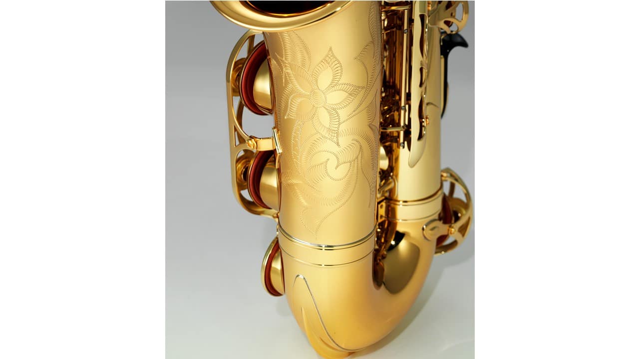 Un grabado realizado a mano en la campana, otorga al saxofón un toque de elegancia.